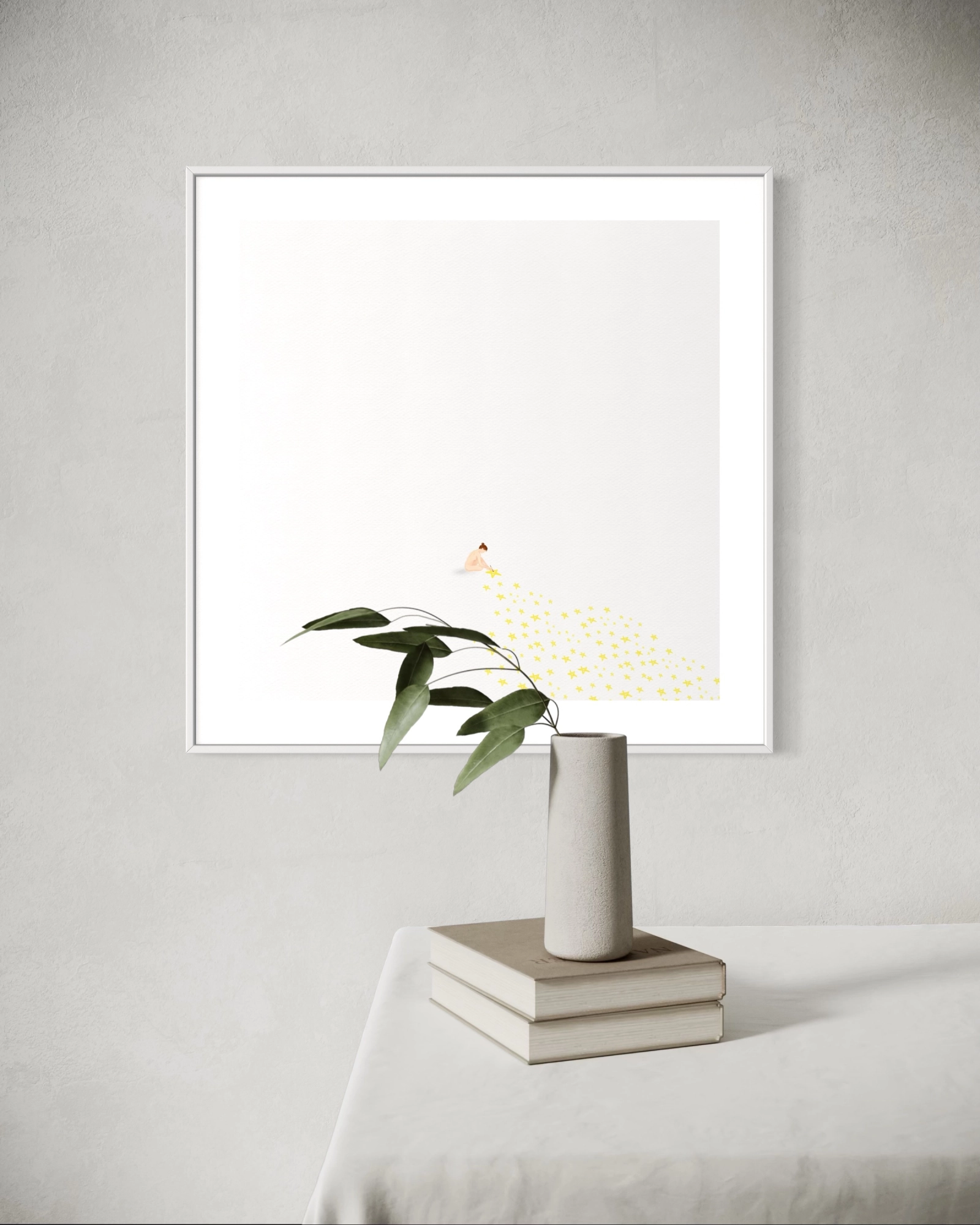 • Print is packaged in a cello sleeve with a cardboard backing or rolled up in a cardboard tube